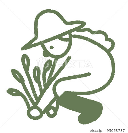 麦わら帽子の働くロングヘアーの女性 農業 ガーデニング 農家