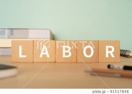 労働のイメージ|「LABOR」と書かれたブロックが置かれたデスク