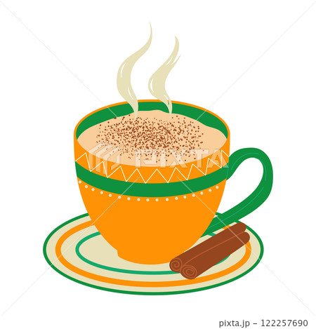 Cup of salep. Traditional turkish hot drink with cinnamon sticks. Hand drawn vector illustration.