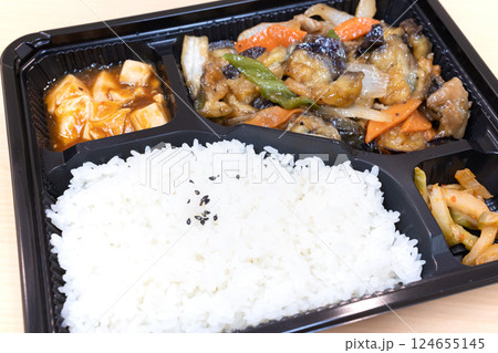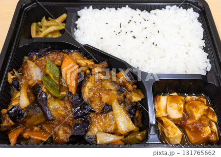 おいしいナスと挽き肉のピリ辛肉野菜炒め中華弁当