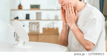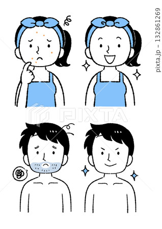 美容 肌荒れ 女性 スキンケア イラスト素材