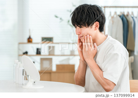 肌あれ・肌トラブル・乾燥肌・ニキビが治る・解消する笑顔の若いアジア人ビジネスマン
