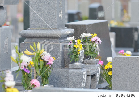 お墓の墓石 仏花