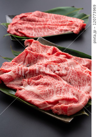 すき焼きや鉄板焼き用の黒毛和牛の肩ロース肉ともも肉