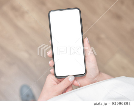 Hand woman work using smartphone with white background for advertising, smartphone screen blank mockup, clipping path.
