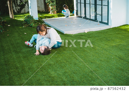 ママと遊ぶ6歳児