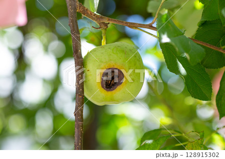 ふじリンゴ キズ 腐る クローズアップ