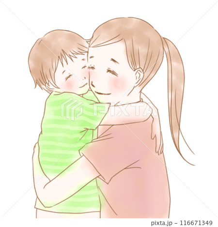 抱っこする親子