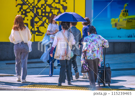 日本の東京都市景観 マ姿の高齢者らが…猛烈な日差し…マ洗脳からの呪縛はいまだ…=渋谷の宮益坂下