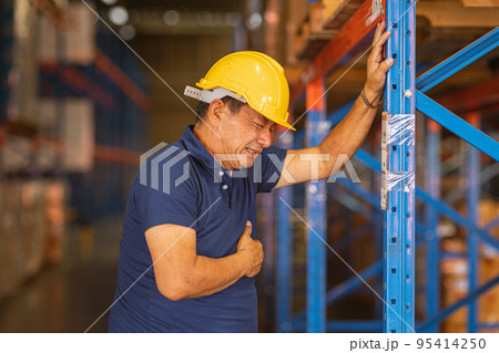 senior adult male worker having a painful infarction. chest pain heart attack health problem from hard working.