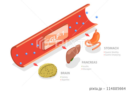 3D Isometric Flat Conceptual Illustration of Glucagon-like Peptide-1, Digestive Hormones