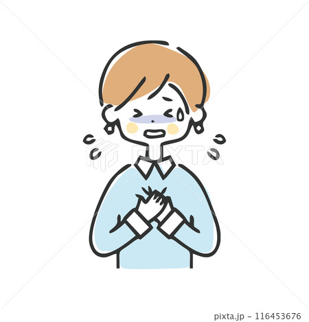 息苦しさを感じている女性 コミカルな手書きの人物 ベクター、線画にカラー