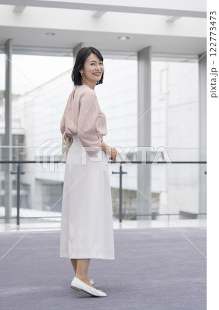 白いスカートのミドル女性 立ち姿 素足 踊り ダンス バレー