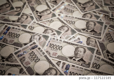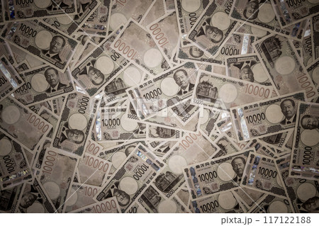 日本の新一万円札。大量の一万円札が敷き詰められたネガティブなイメージ