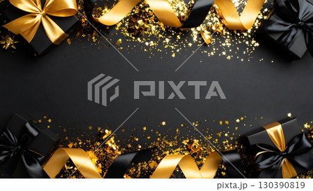 黒と金のリボンで彩るエレガントなギフトボックス背景