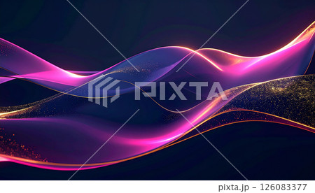 ダーク背景に輝くピンクと金の幻想的な光の波