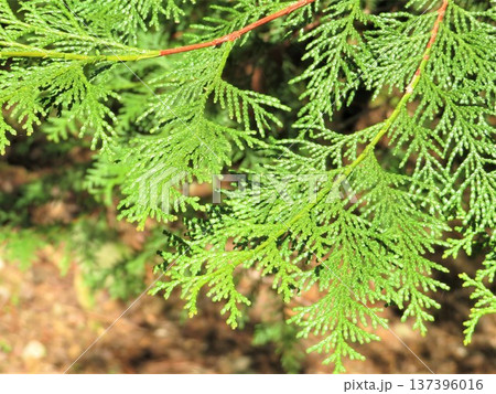 爽やかな緑のヒノキの枝葉 春から初夏の自然イメージ