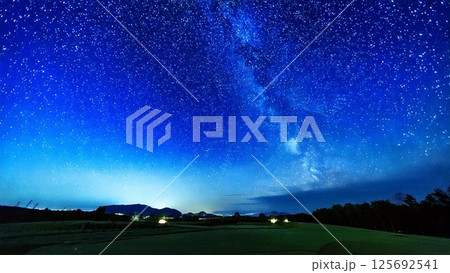 ゴルフのイメージ 夜空 芝生 おしゃれ 背景素材 チラシ・バナー・動画素材 AI生成素材