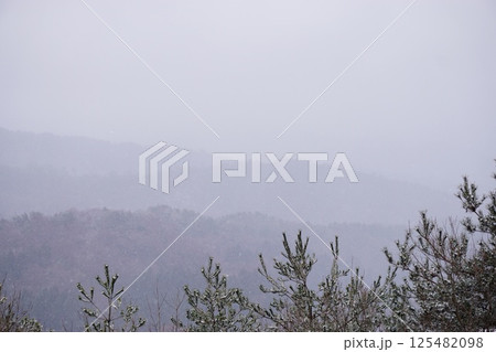 降雪時の山々