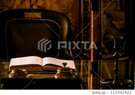 たくさんの積読した本の山と紙の質感が伝わる写真素材