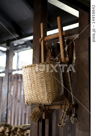 古民家の軒下の背負子