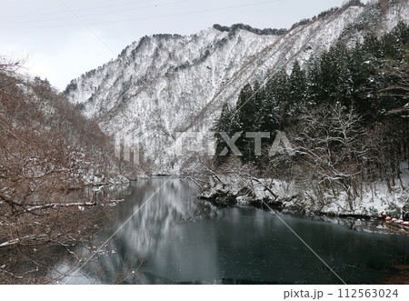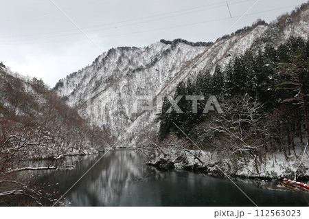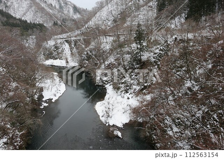 冬の胎内川 雪景色