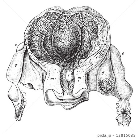 Uterus at 20 or 25 days of the state of gestation, vintage engra