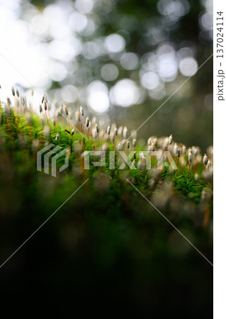 生い茂る苔と鮮やかな落ち葉 マクロの世界