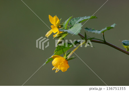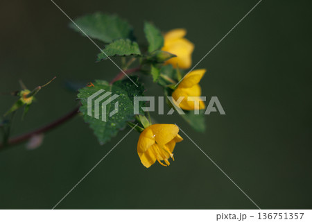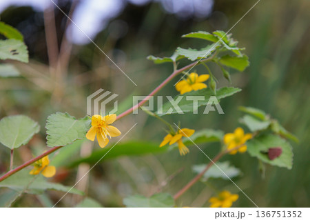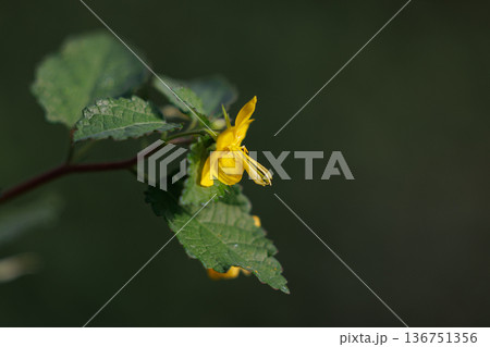 明るい黄色の花と赤褐色の種子が特徴の1年草 カラスノゴマ
