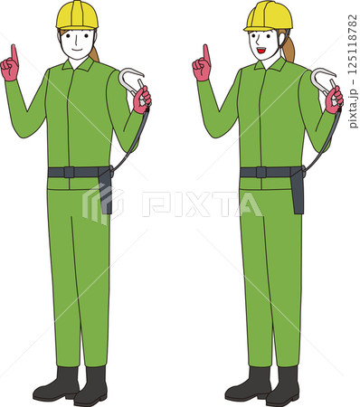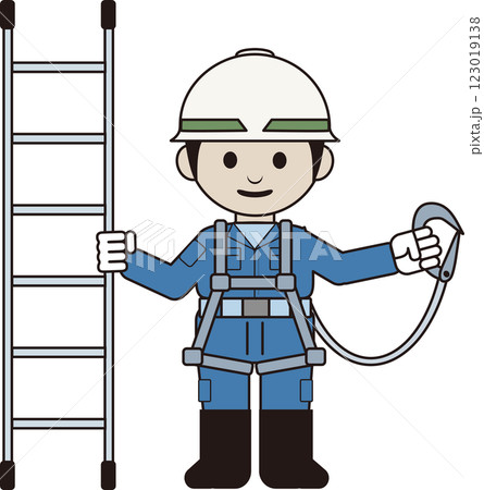 昇降前の墜落制止用器具の装着を確認する作業員のイラスト