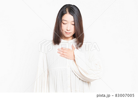 胸に手を当てている若い女性