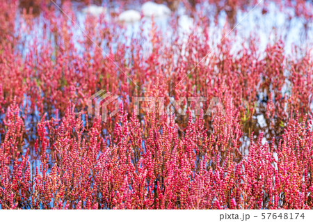 一面赤色の染まるサンゴ草 能取湖 北海道網走市
