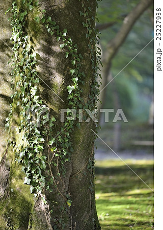木洩れ日の当たる大木とツタ