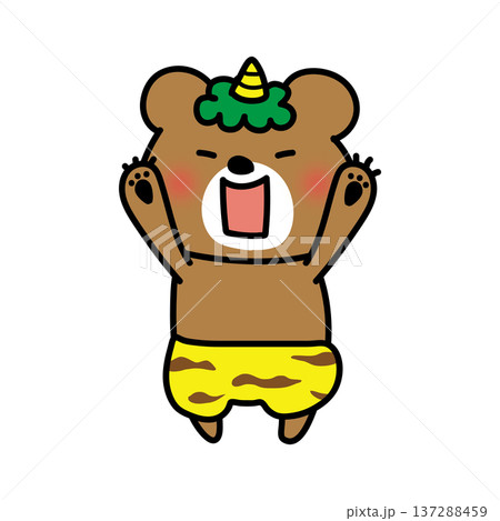 ガォーと脅かしている青鬼の格好をしたくまぽて