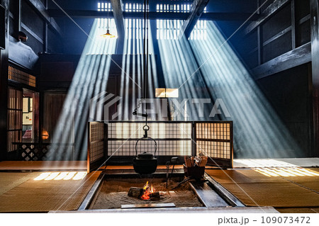 長野県 妻籠宿/脇本陣奥谷【旧中山道・木曽路】囲炉裏の煙に差し込む光