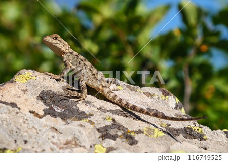 A small lizard sits on a sun-warmed rock, basking in the sunlight.