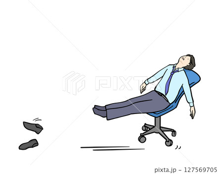 放心状態で椅子を滑らせるやる気のない靴も置き去りのスーツ男性イラスト