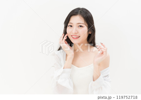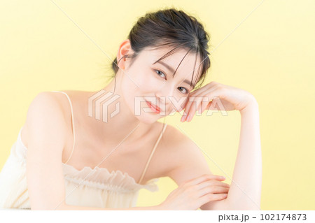 透明感あふれる美しい素肌の笑顔の若い日本人女性 beautiful young woman