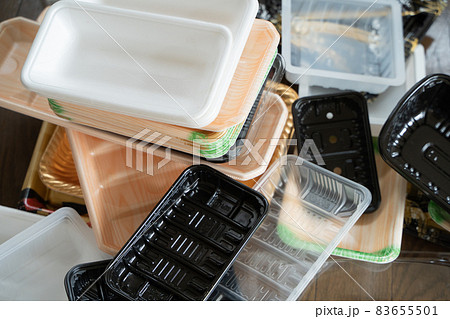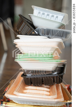 積みあがった食品トレーのイメージ
