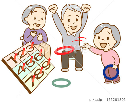 介護施設でレクリレーション テレビゲームをする高齢者 イラスト