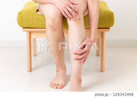 ふくらはぎをさする若い女性 パーツカット 脱毛