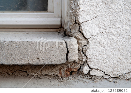 目に見える亀裂やカビのある風化した壁、老朽化したインフラとメンテナンスの問題の概念