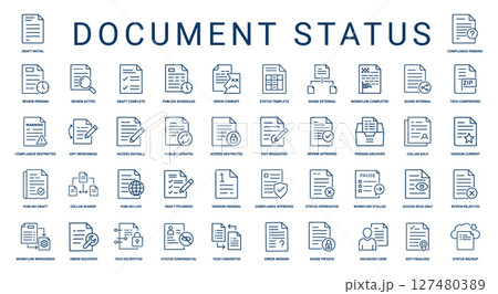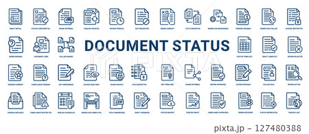 document status line icon set, stages document from creation to completion, edit pending review updated