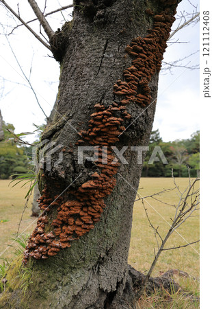 桜の幹に発生した「カワウソタケ」:冬の状態