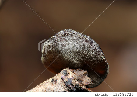倒木に着生する若いアラゲキクラゲ(ナンカイキクラゲ)キノコ(アウトドアフィールド動物マクロ撮影)