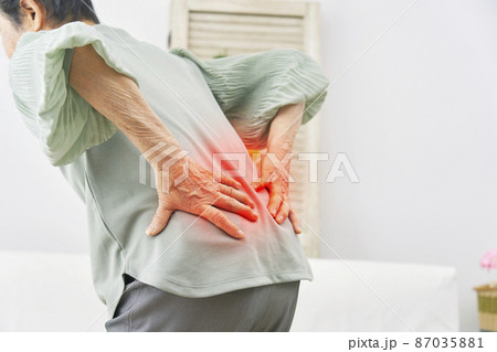 腰が痛い高齢女性 リビング