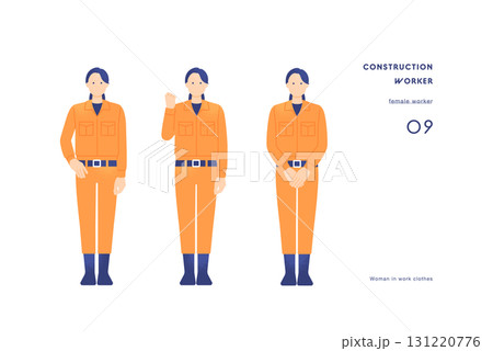建設現場や工場で働く作業員のイラスト 作業服を着てヘルメットを着用した女性