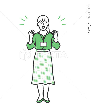 ポジティブな表情でガッツポーズをとるビジネスウーマンのイラスト素材