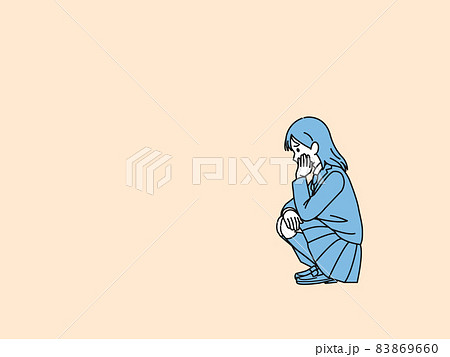 失恋 落ち込む女の子 いじける 学生 中高生 高校生 中学生 イラスト素材