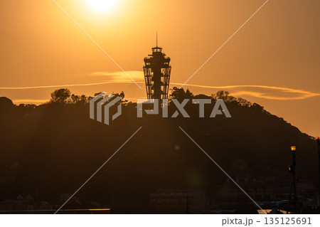 湘南神奈川県藤沢市・鎌倉市の江ノ島の夜明け